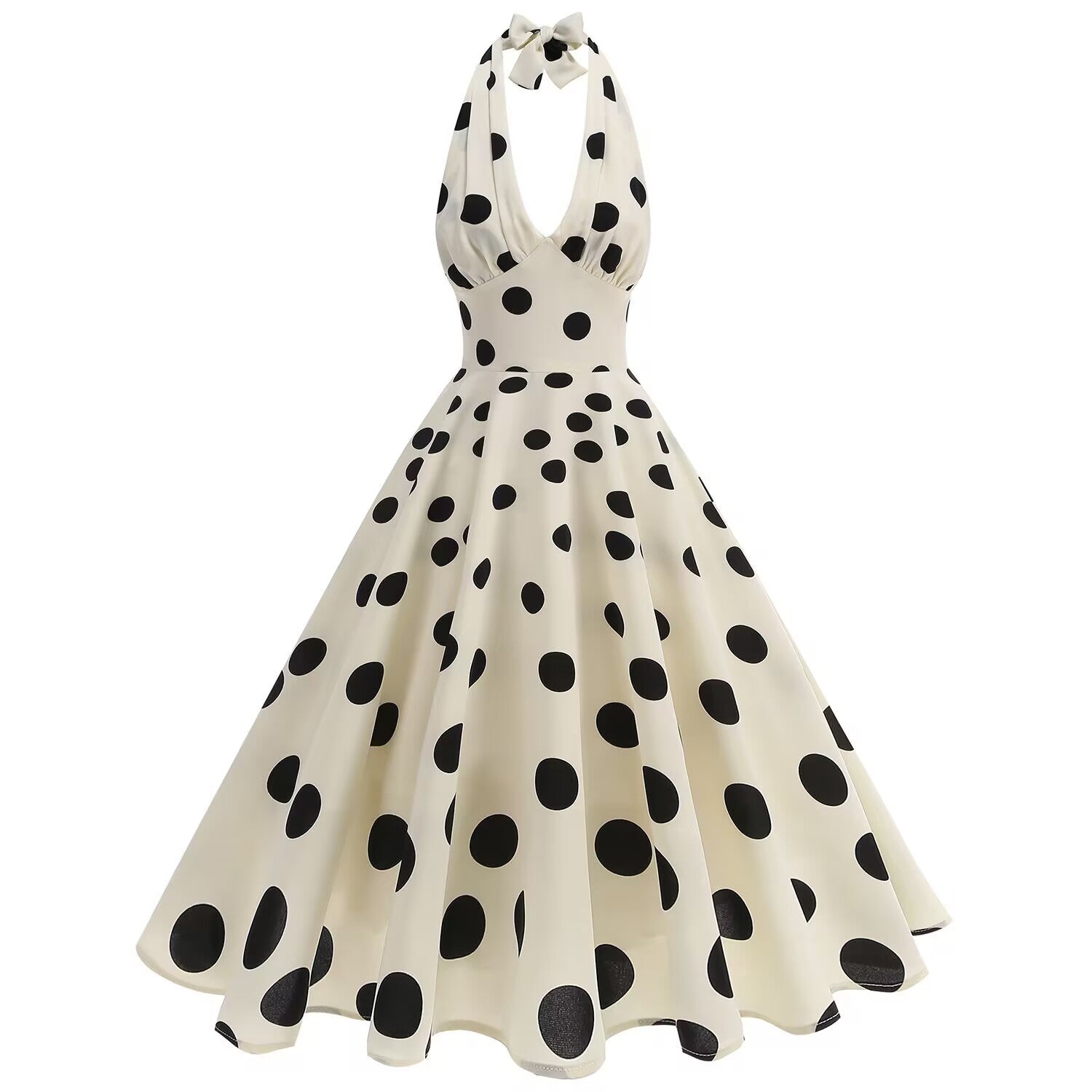 Damen Retro Maxikleid mit fröhlichen Punkten und elegantem Halterdesign Stalluxe