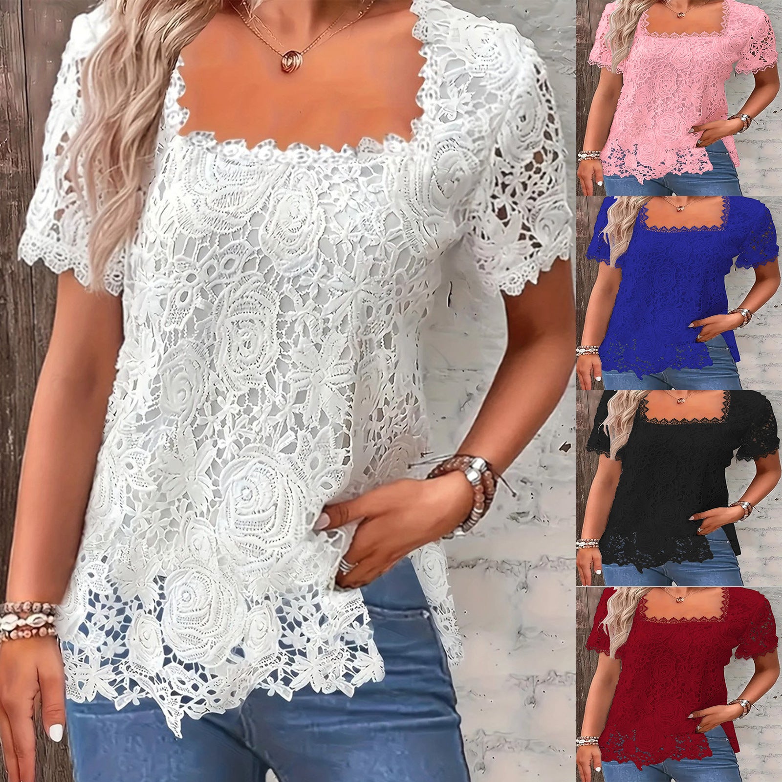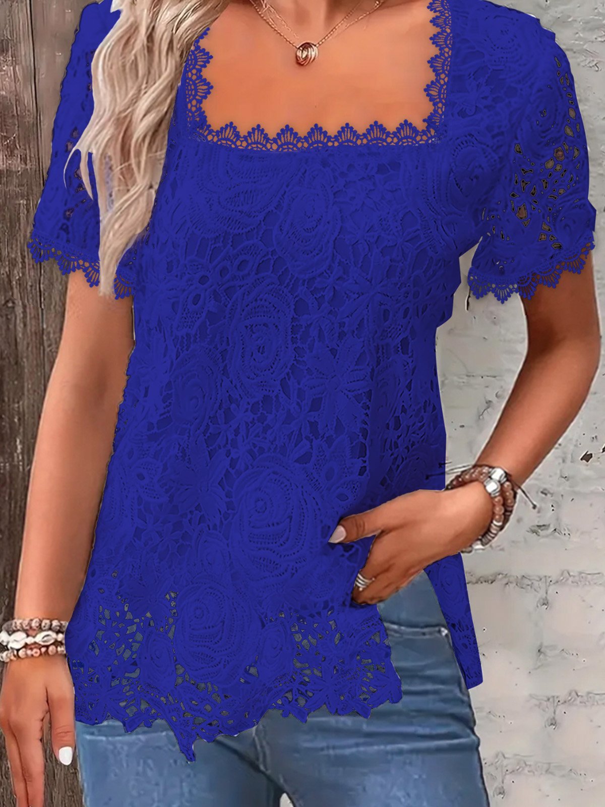 Entdecken Sie das elegante Damen Spitzenoberteil mit quadratischem Ausschnitt und dekorativen Ärmeln von Stalluxe. Dieses exquisite Oberteil vereint Stil und Komfort und ist perfekt für verschiedene Anlässe, von feierlichen Veranstaltungen bis hin zum Alltag.