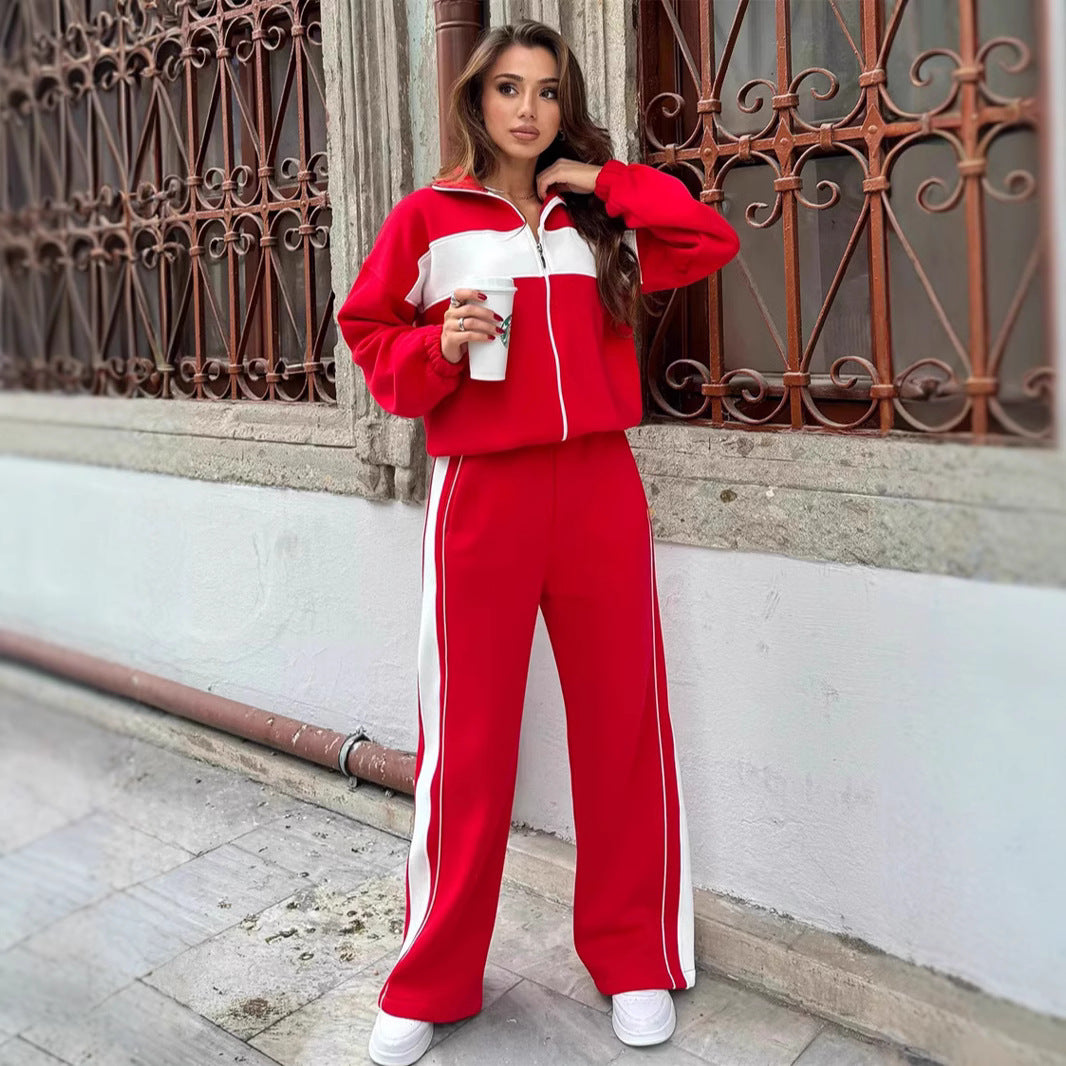 Damen sportlicher Trainingsanzug mit hochgeschlossenem Kragen und kontrastierenden Streifen Stalluxe