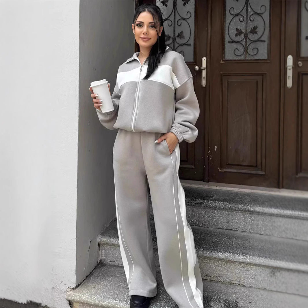 Entdecken Sie unseren stilvollen und bequemen Damen sportlichen Trainingsanzug, der perfekt für aktive Tage und gemütliche Stunden zu Hause ist. Dieser Trainingsanzug kombiniert Funktionalität und modisches Design für eine trendbewusste Ausstrahlung.