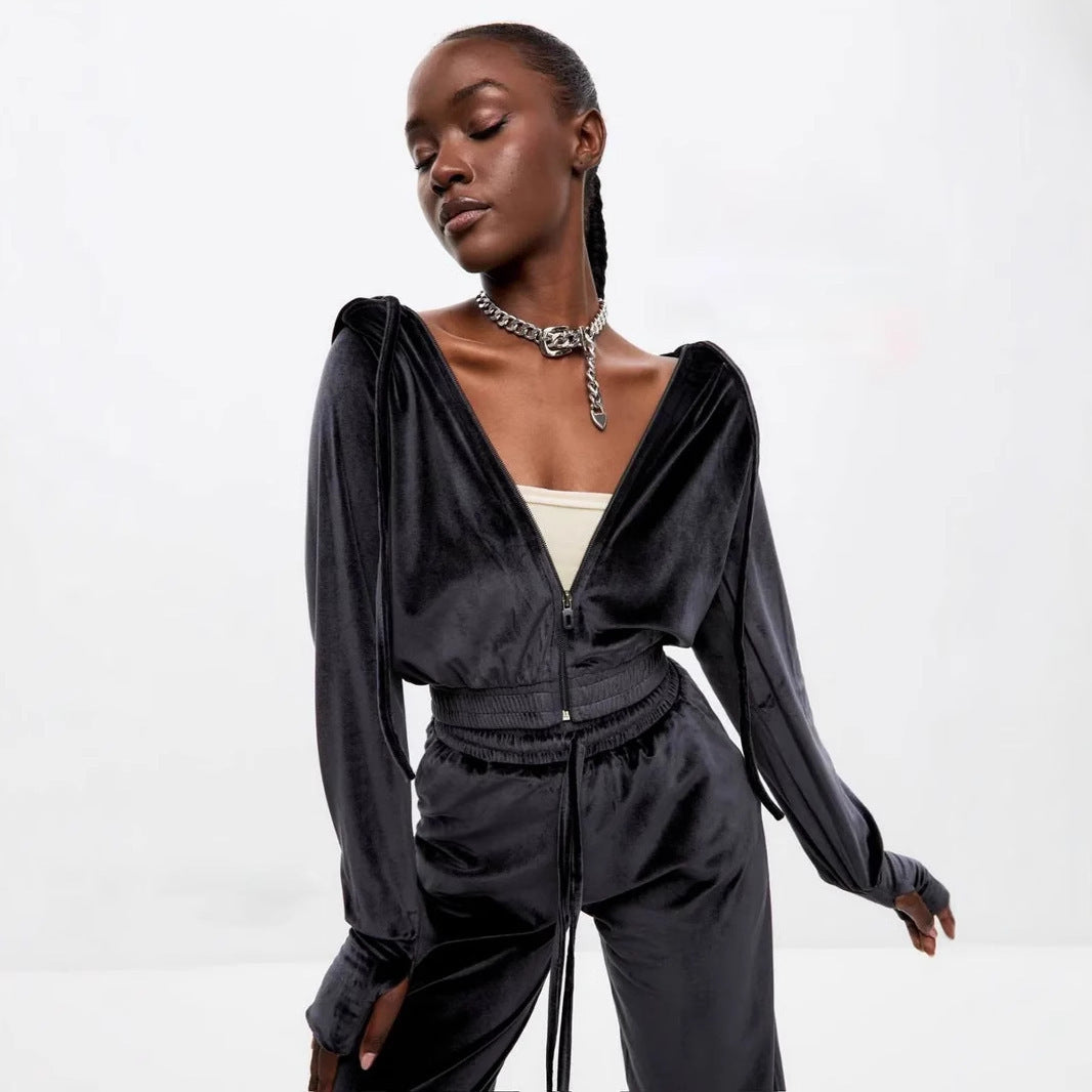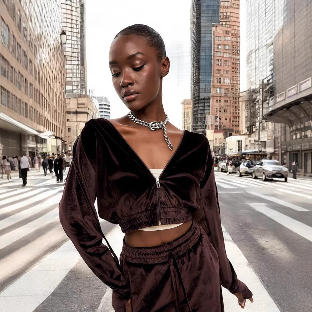 • Hochwertiges Material: Der Jogginganzug besteht aus weichem Velours, das sich angenehm auf der Haut anfühlt und für einen luxuriösen Look sorgt.