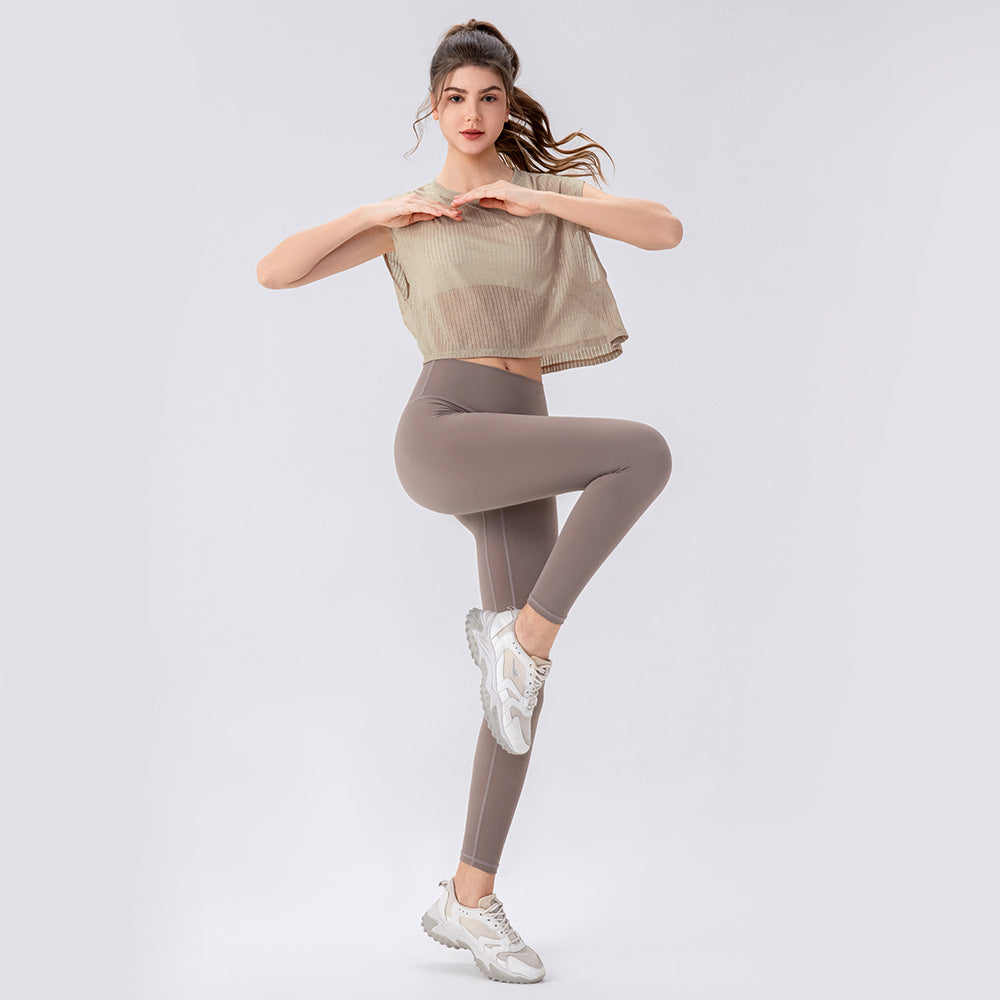 Damen Sportliches Kurzarm-Trainingsoberteil aus atmungsaktivem Mesh Stalluxe