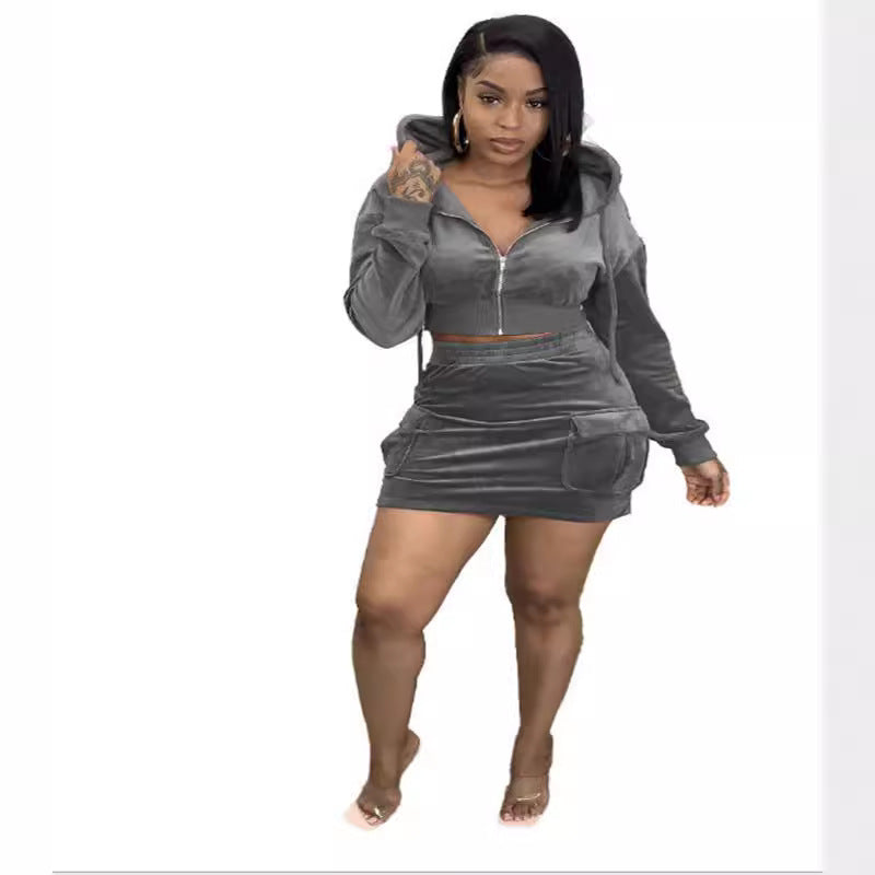 Entdecken Sie unser Damen Sportliches Velours zwei-teiliges Set, das stilvollen Komfort und lässige Eleganz vereint. Das Set besteht aus einem weichen Kapuzensweater und einer passenden kurzen Rockhose, perfekt für entspannte Tage oder lässige Ausflüge.