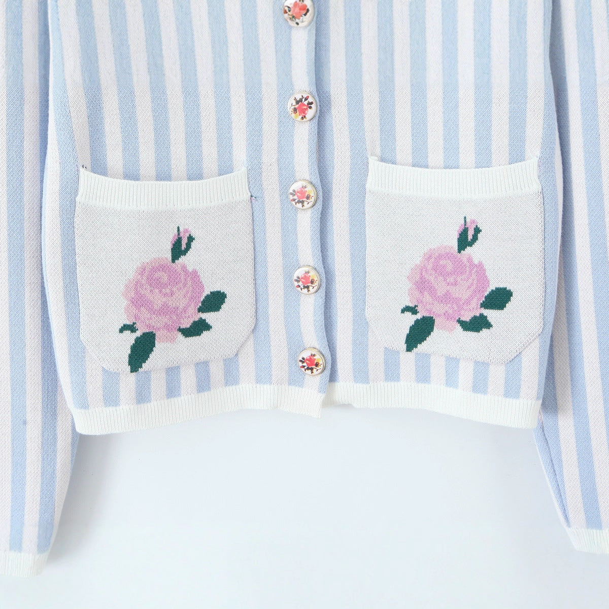 Diese exquisite Strickjacke von Stalluxe ist das perfekte Kleidungsstück für modebewusste Damen, die sowohl Eleganz als auch Komfort schätzen. Mit einem stylischen Streifenmuster und zarten floralen Verzierungen ist diese Jacke ideal für verschiedene Anlässe.