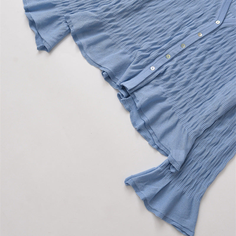 • Detailiertes Design: Die Strickjacke verfügt über eine strukturierte Oberfläche und elegante, weite Ärmel, die einen femininen Look verleihen.