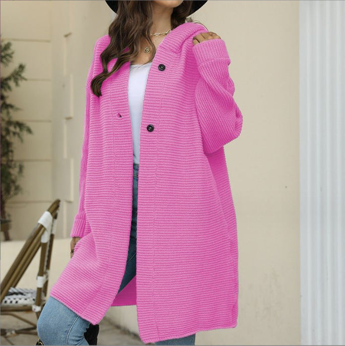 Damen Strickmantel mit Kapuze und Knopfverschluss Stalluxe