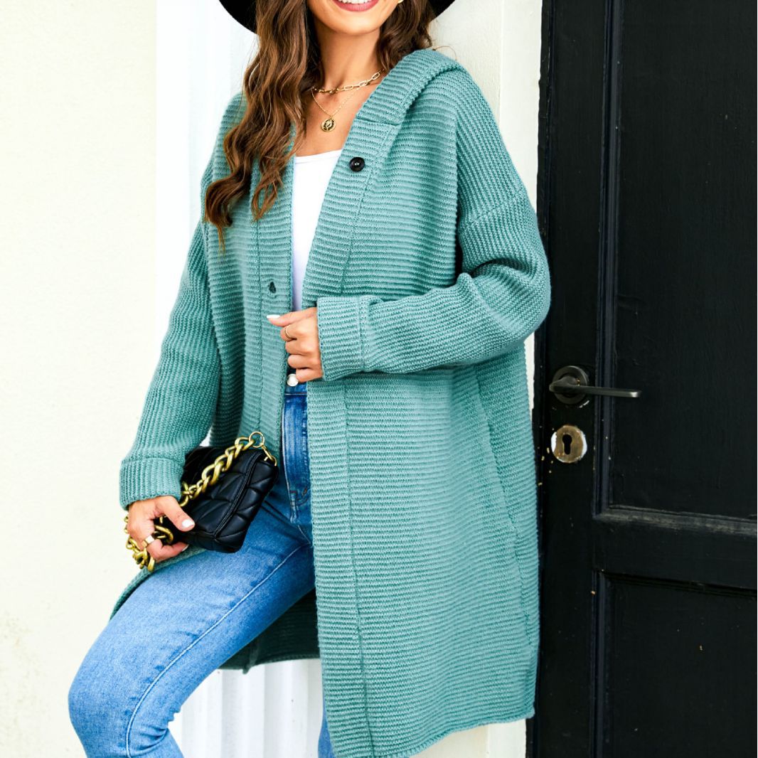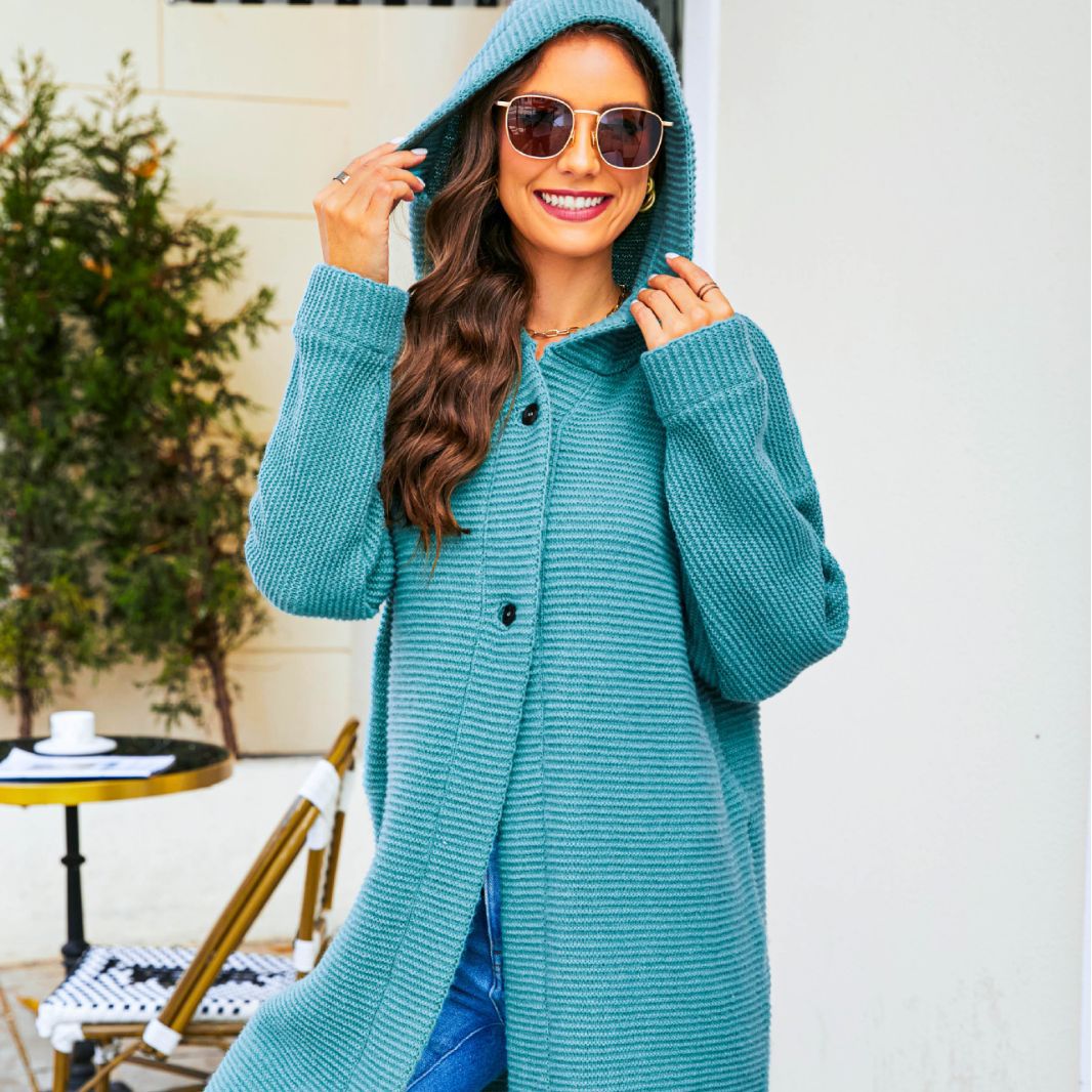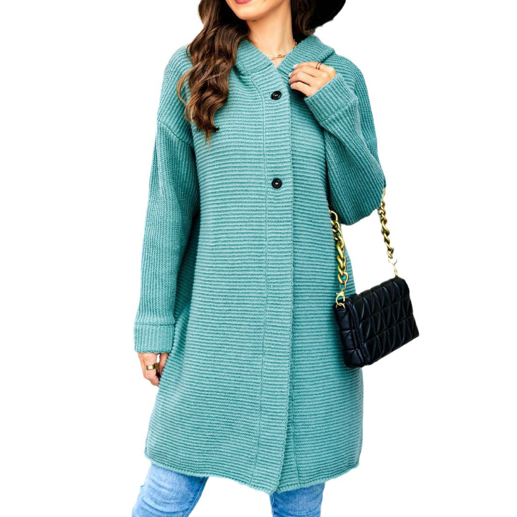 Entdecken Sie unseren stilvollen und vielseitigen Damen Strickmantel mit Kapuze und Knopfverschluss von Stalluxe. Dieses einzigartige Kleidungsstück kombiniert Komfort mit modischem Design und ist perfekt für jede Gelegenheit.