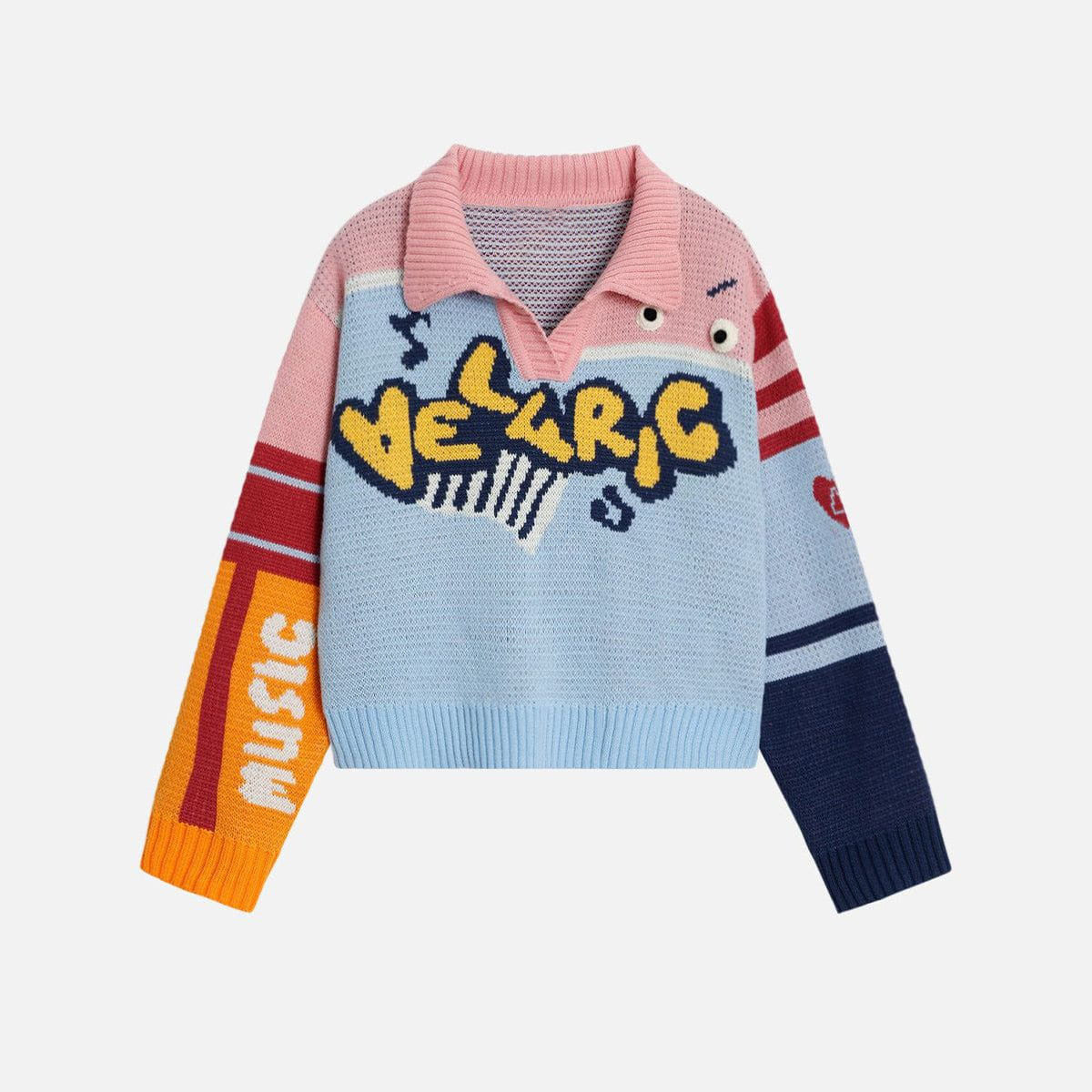 Entdecken Sie unseren einzigartigen Damen Strickpullover, der mit seinem bunten Grafik-Design und dem modernen Kragen garantiert Aufmerksamkeit erregt. Dieses Oberteil kombiniert Komfort und Stil, ideal für einen lässigen Look oder ein trendiges Outfit.