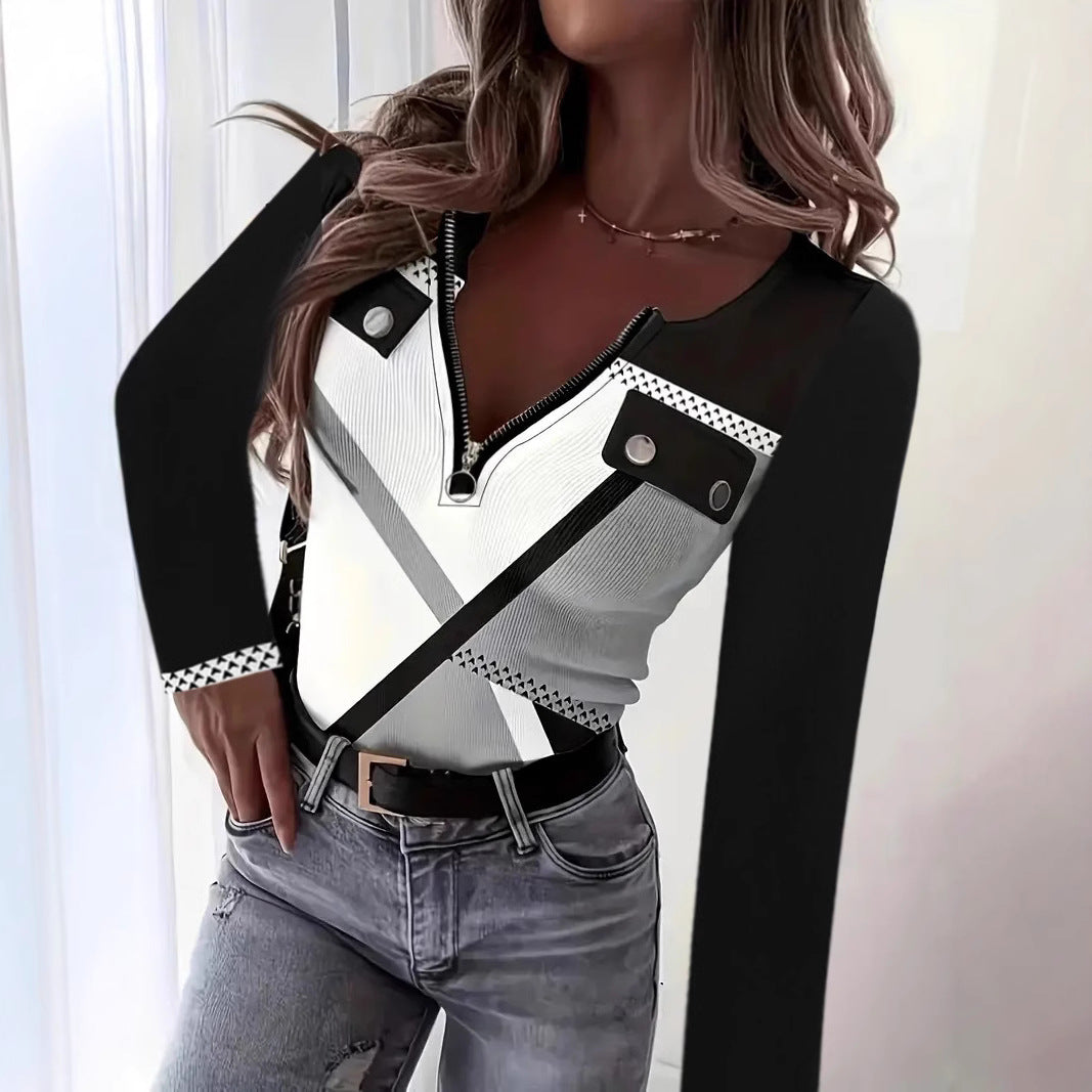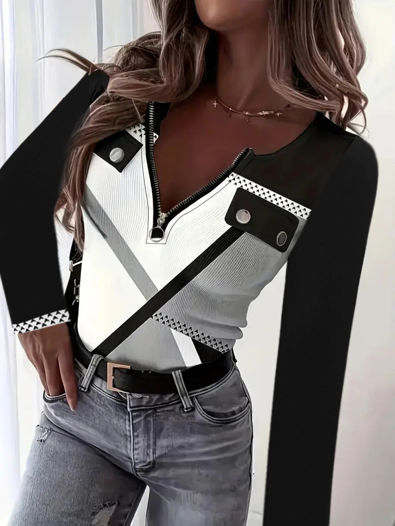 Entdecken Sie unser Damen stylisches Oberteil mit Reißverschluss und dekorativem Gürtel, das perfekt für modebewusste Frauen ist. Dieses Oberteil kombiniert Trendbewusstsein mit Funktionalität und bietet eine perfekte Passform.