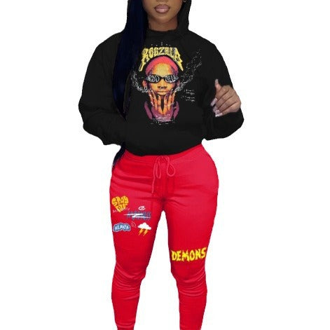 Damen trendiges Oberteil und Jogginghose Set mit kreativen Grafiken Stalluxe