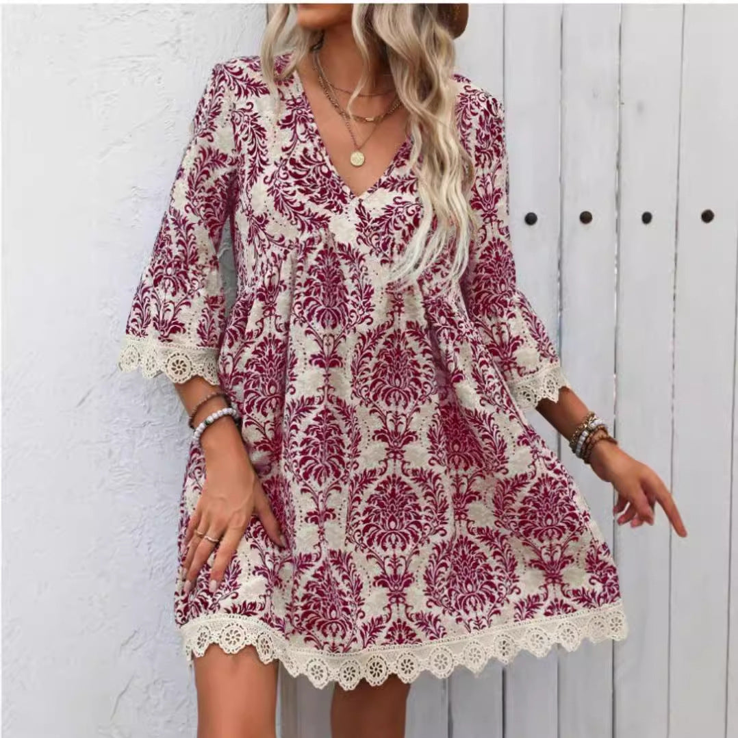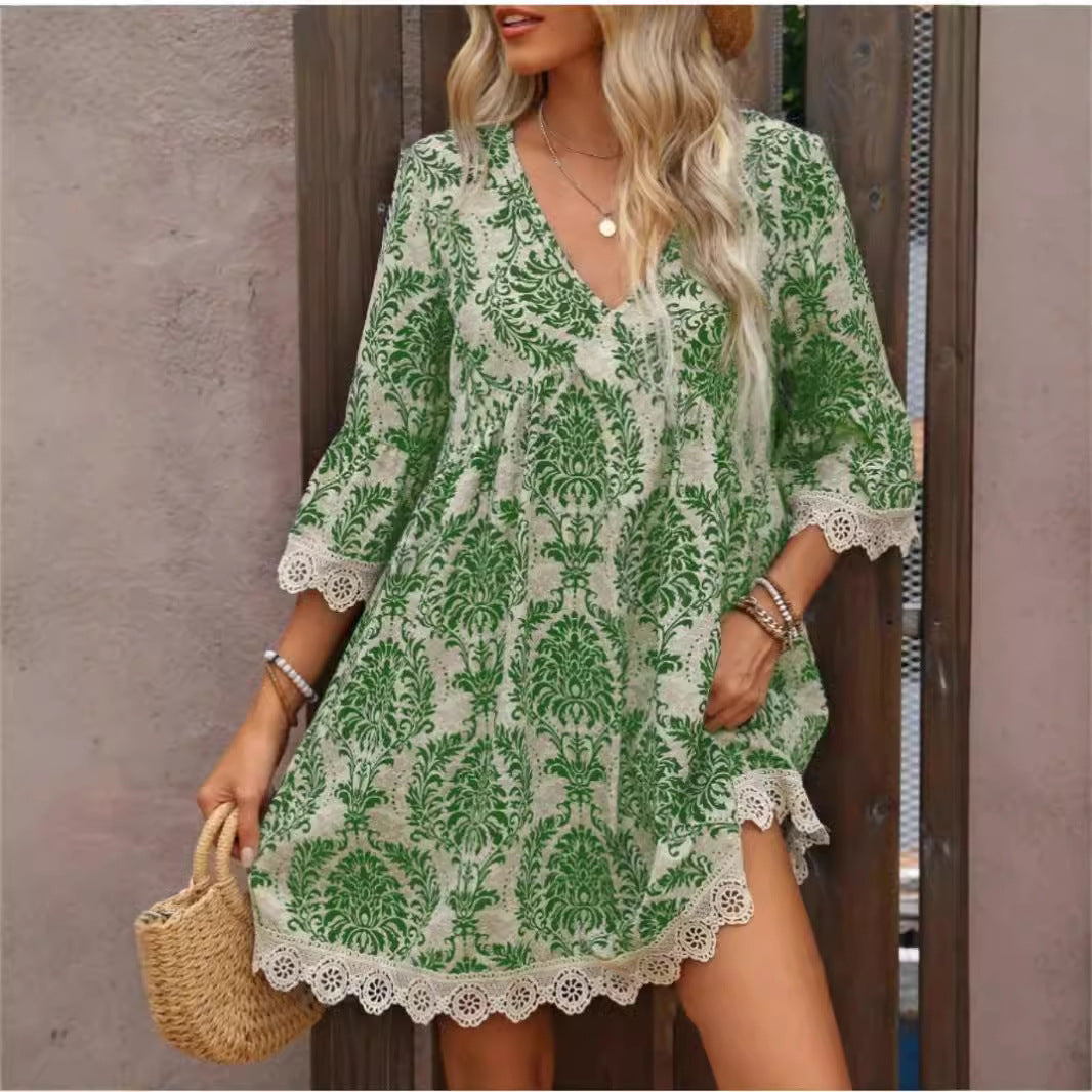 Damen Tunika-Kleid mit viktorianischem Muster und Spitzenakzenten Stalluxe