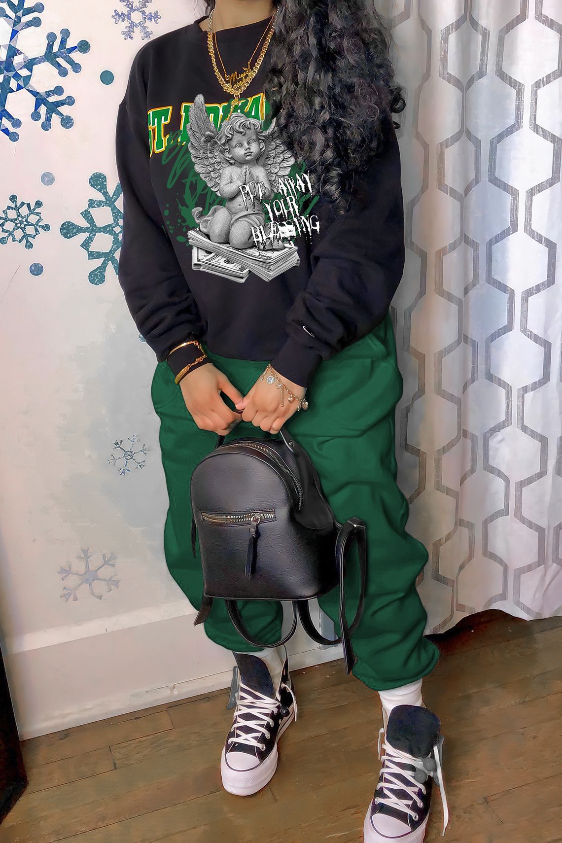 • Trendiges Design: Der auffällige Druck mit Engelmotiv vermittelt einen urbanen und kreativen Look.