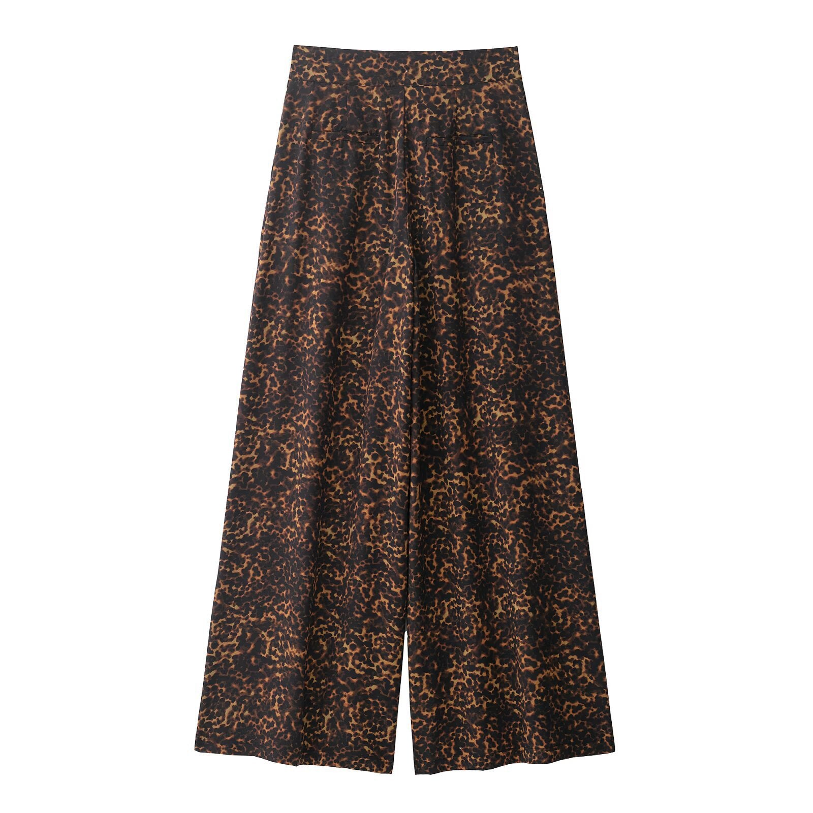 Damen Weit geschnittene Leoprint-Hose mit elastischem Bund und hohen Taschen Stalluxe