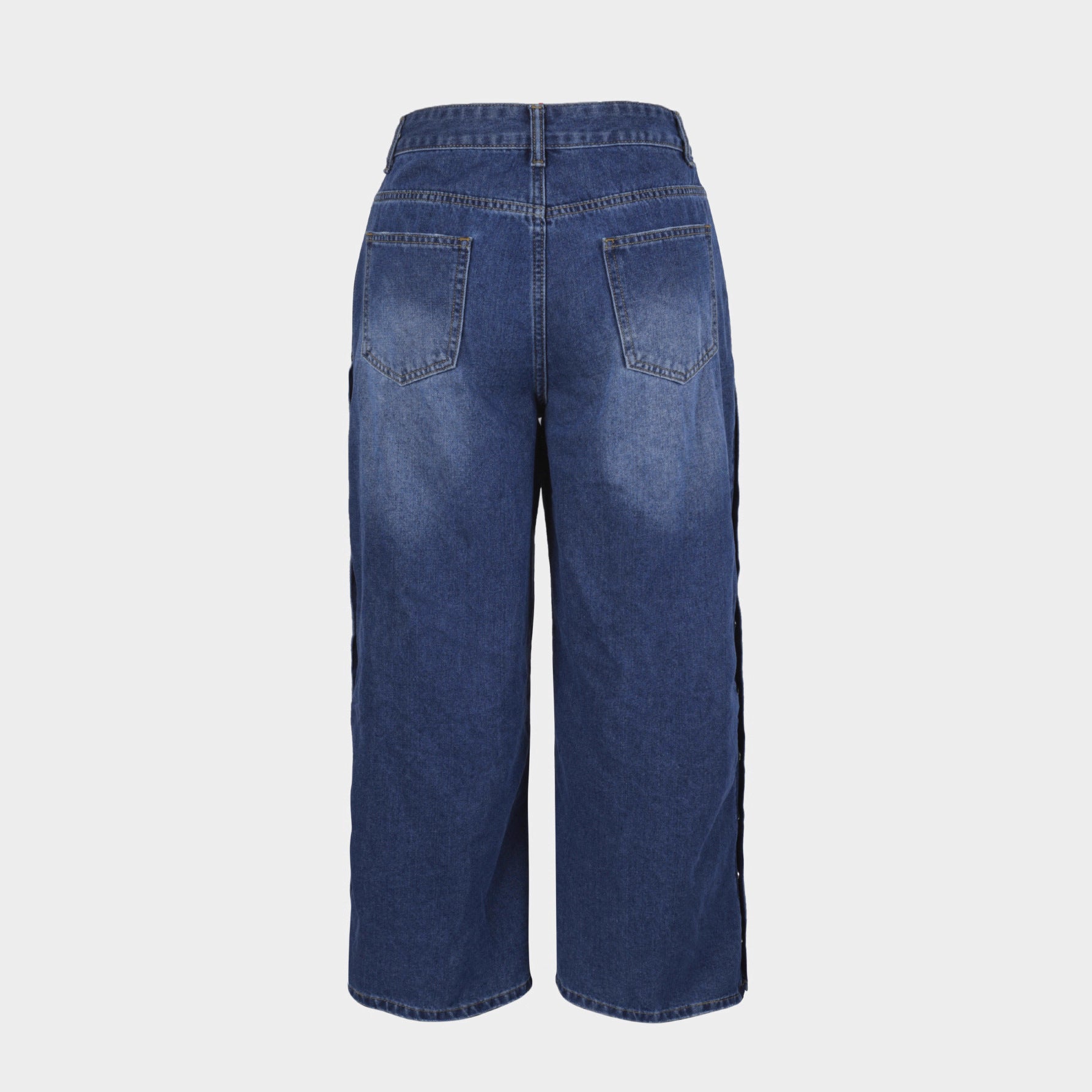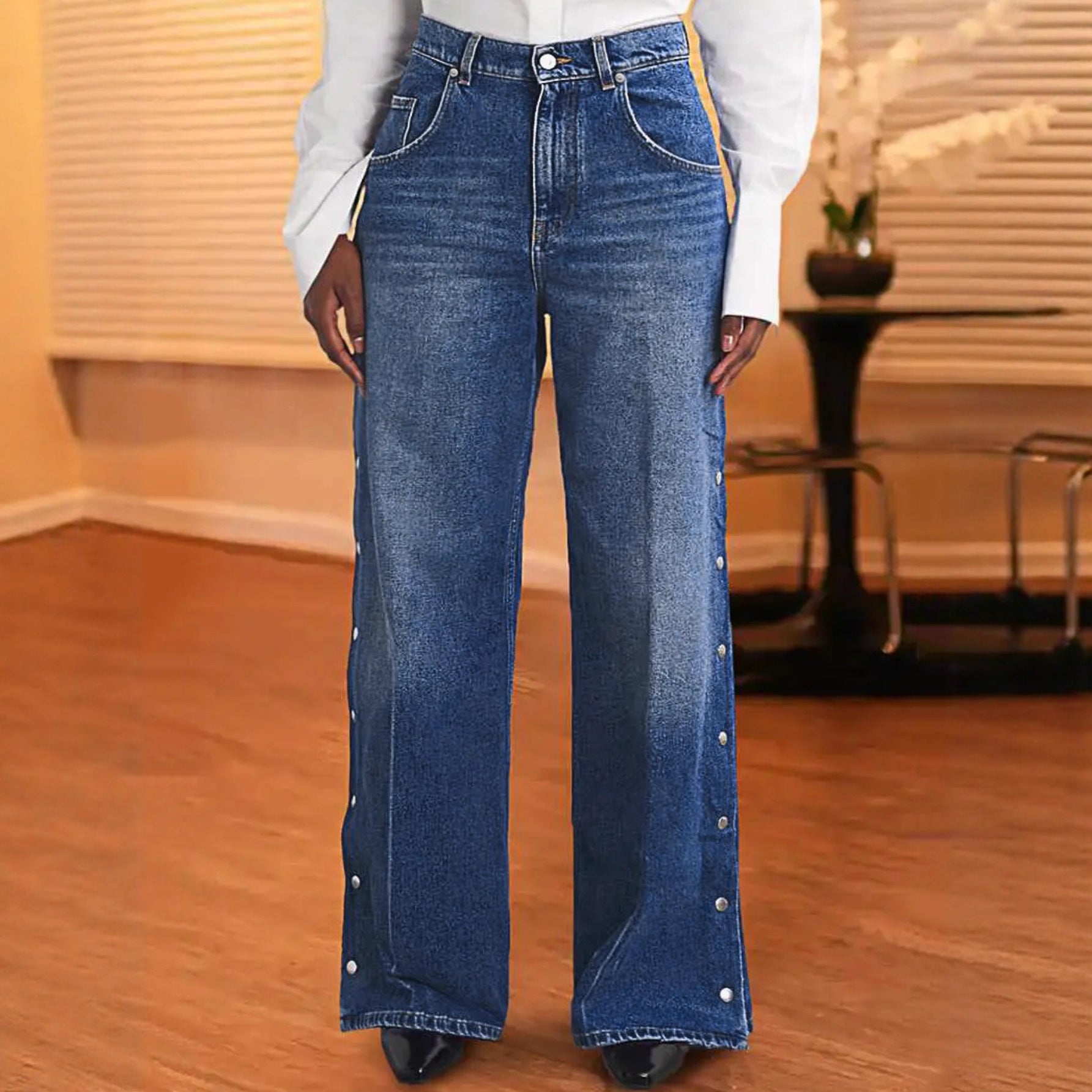 Damen Weite Denimhose mit Knopfleiste und hohem Bund Stalluxe
