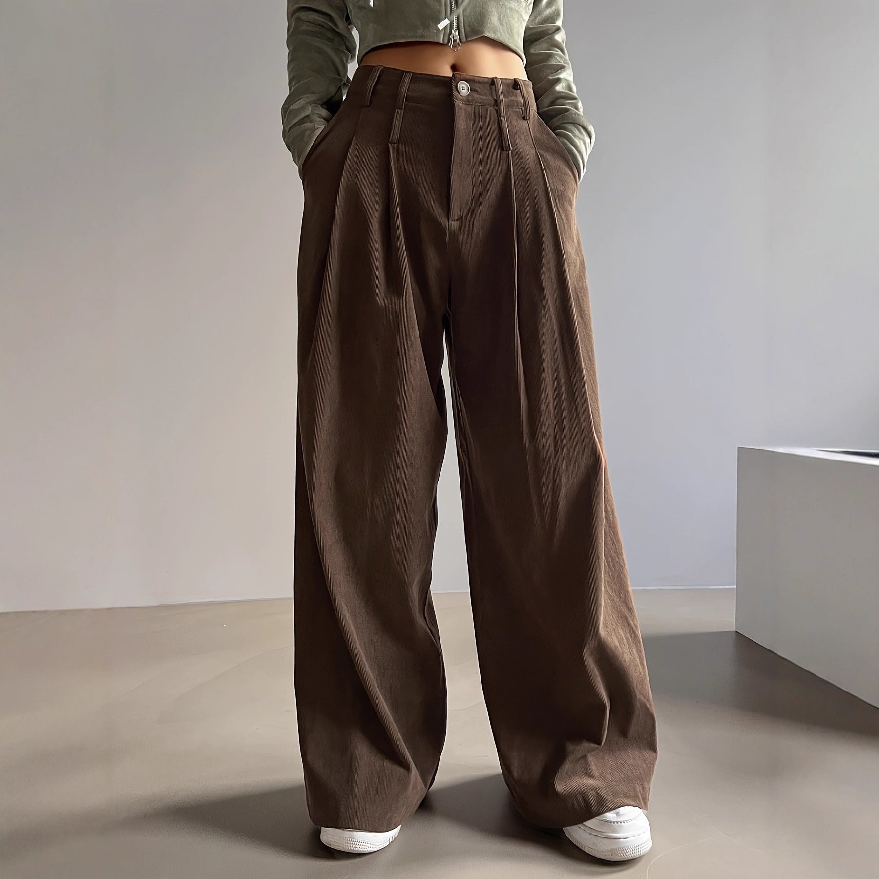 Die weiten High-Waist-Hosen von Stalluxe sind nicht nur ein modisches Statement, sondern bieten auch den nötigen Komfort für den täglichen Gebrauch. Perfekt für Büro, Freizeit oder besondere Anlässe – stellen Sie Ihre persönliche Style-Statement zusammen!
