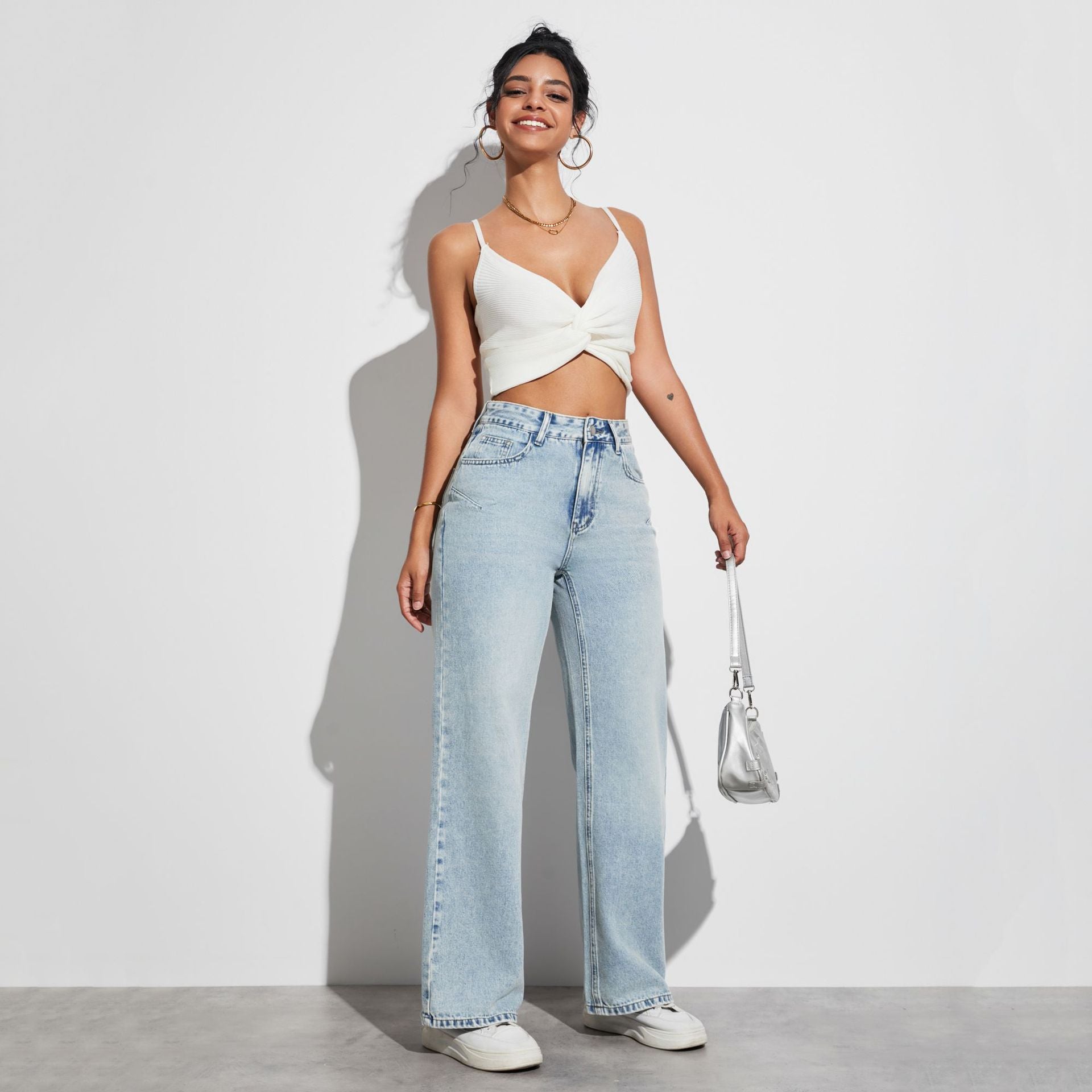 Verleihen Sie Ihrem Look mit diesen stylishen, weiten High-Waist Jeans von Stalluxe einen Hauch von Eleganz und Komfort!