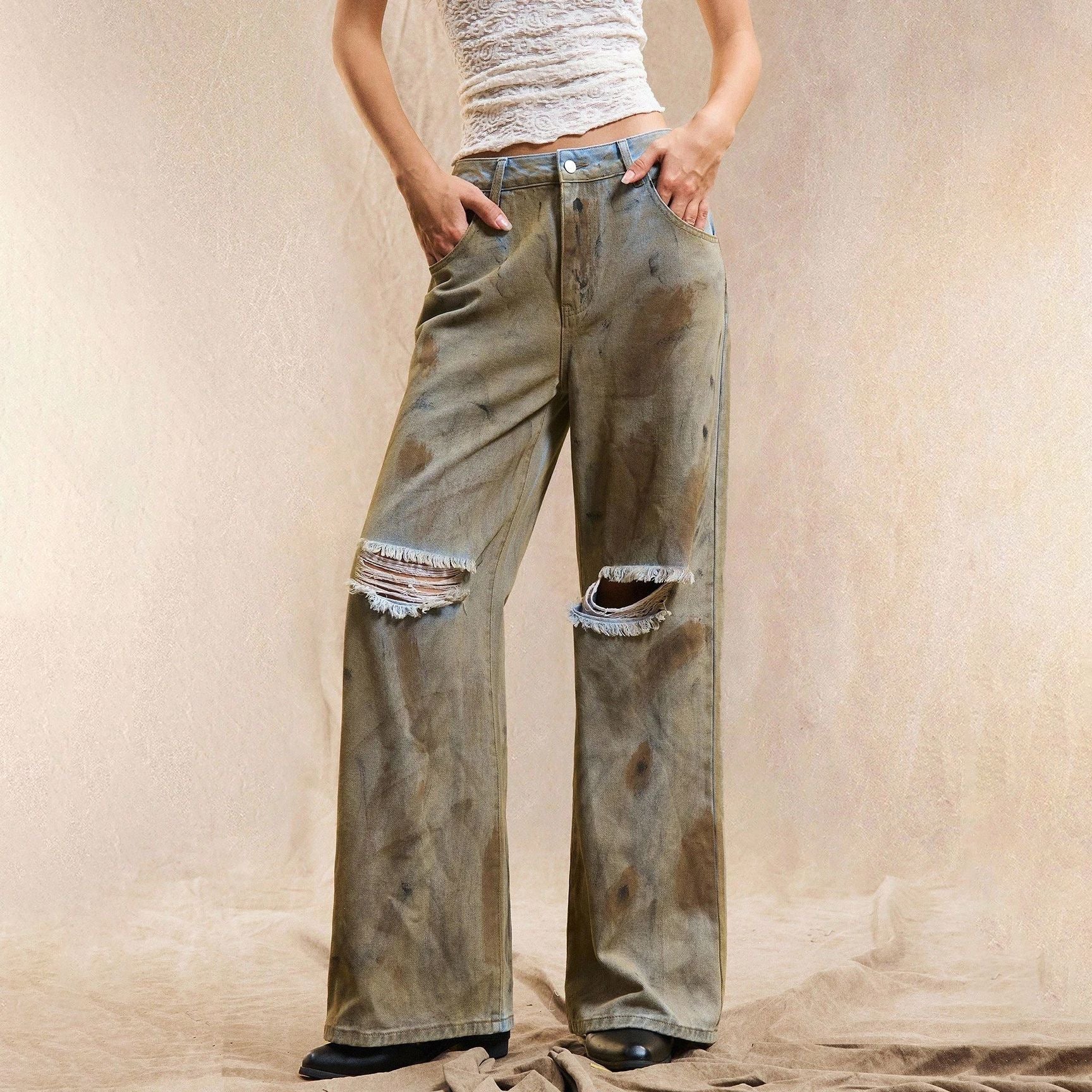 Entdecken Sie die Damen Weite Jeans mit modischen Destroyed-Details von Stalluxe – die perfekte Kombination aus Stil und Komfort. Diese Jeans sind nicht nur ein modisches Statement, sondern auch ein absolutes Must-Have für jede Garderobe.