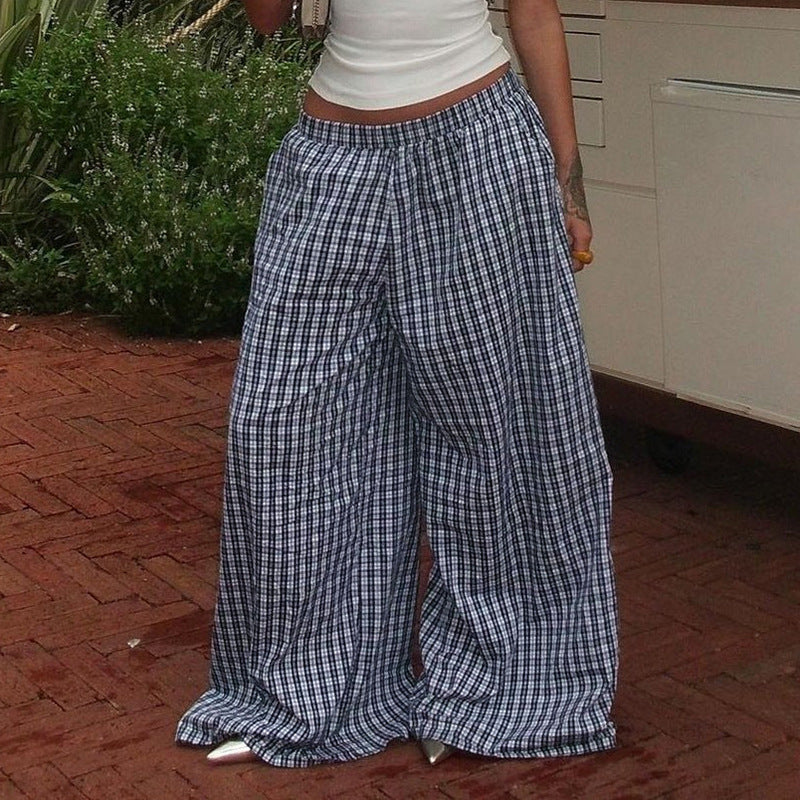 Damen Weite Karottenhose mit elastischem Bund und feinem Karo-Muster Stalluxe