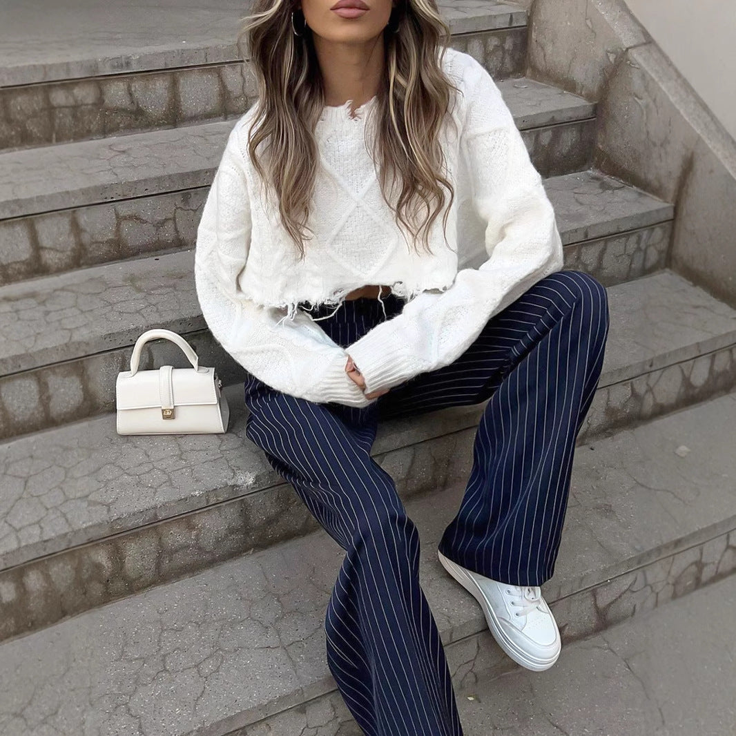 Entdecken Sie die perfekte Kombination aus Stil und Bequemlichkeit mit unserer Damen weitgeschnittenen Streifenhose mit elastischem Bund von Stalluxe. Diese elegante Hose ist ideal für den modernen Alltag und bietet dank des lockeren Schnitts hervorragenden Tragekomfort.