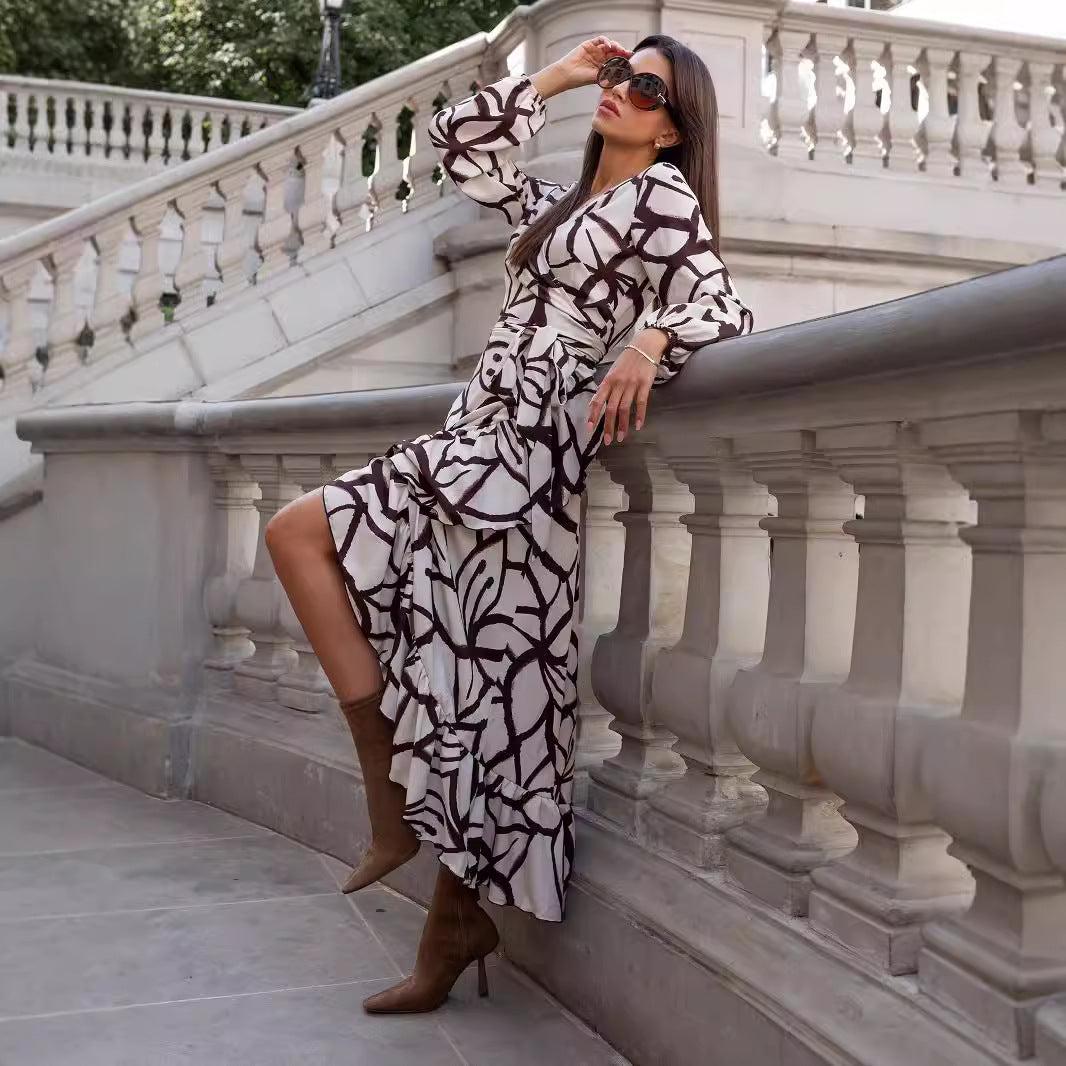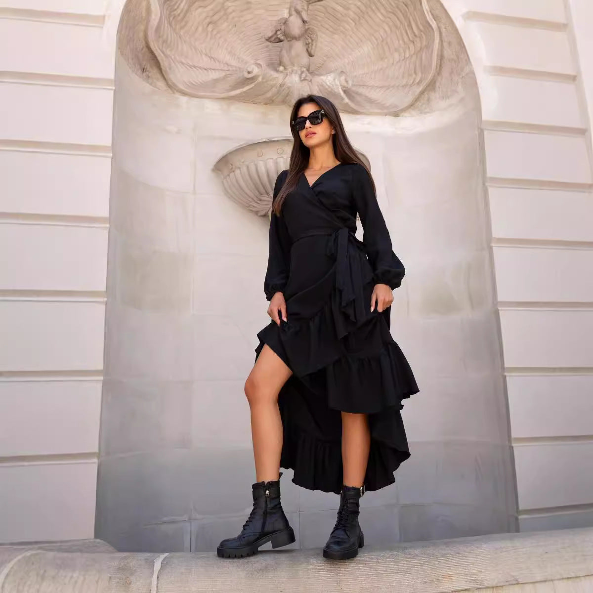 • Modisches Design: Das Wickelkleid hat einen tiefen V-Ausschnitt und betont die feminine Silhouette.