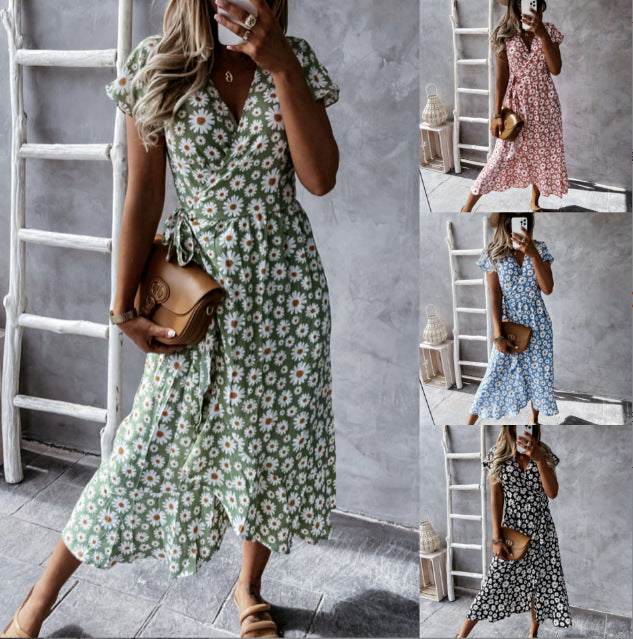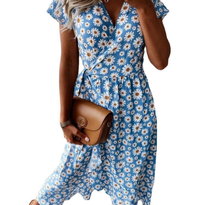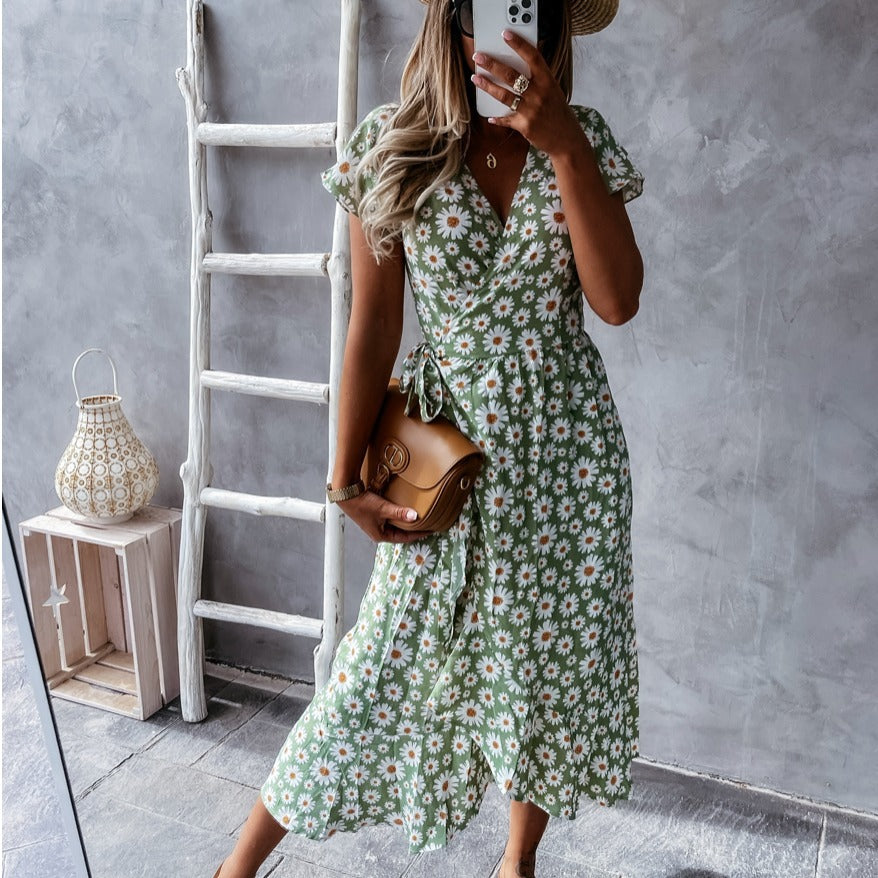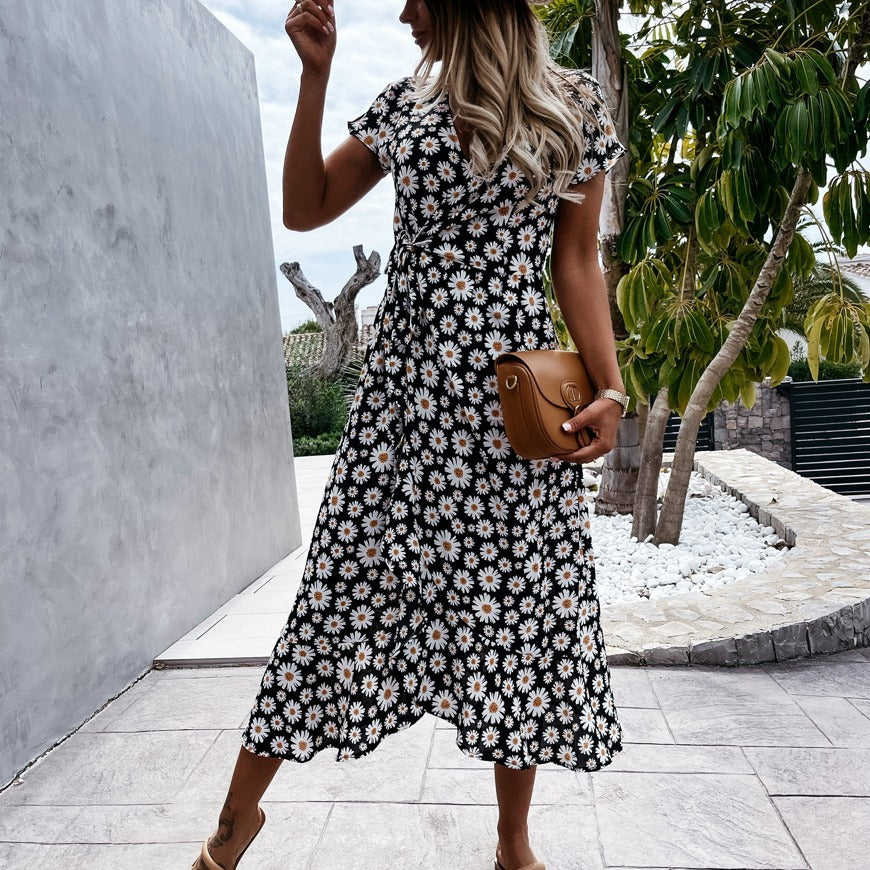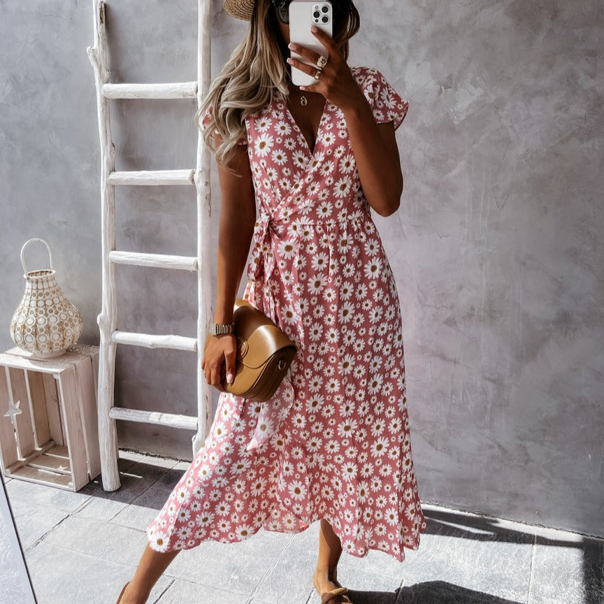 Damen Wickelkleid mit Blumenmuster und taillierbarem Gürtel Stalluxe