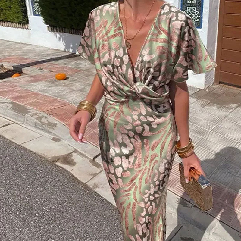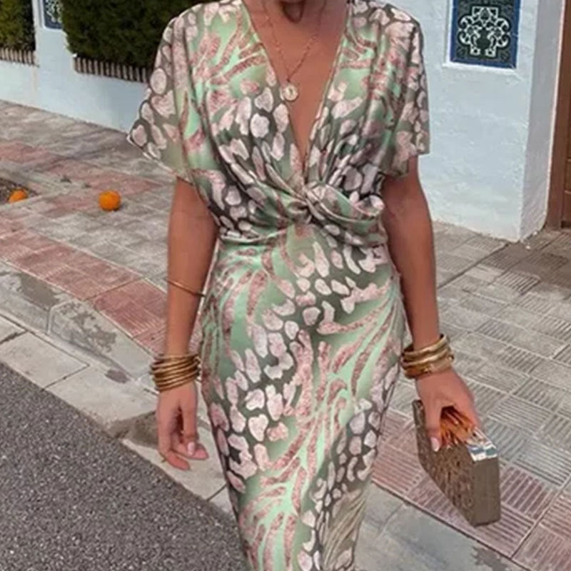 Damen Wickelkleid mit elegantem Leopardenmuster und tiefem V-Ausschnitt Stalluxe
