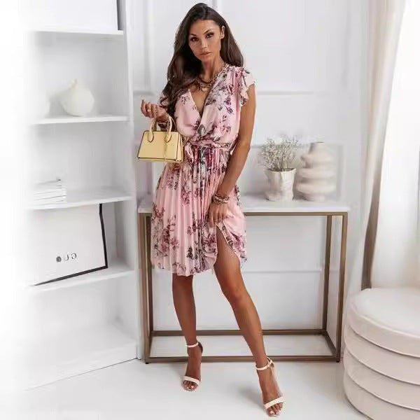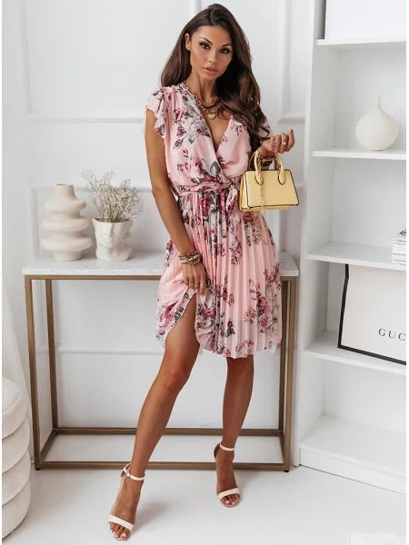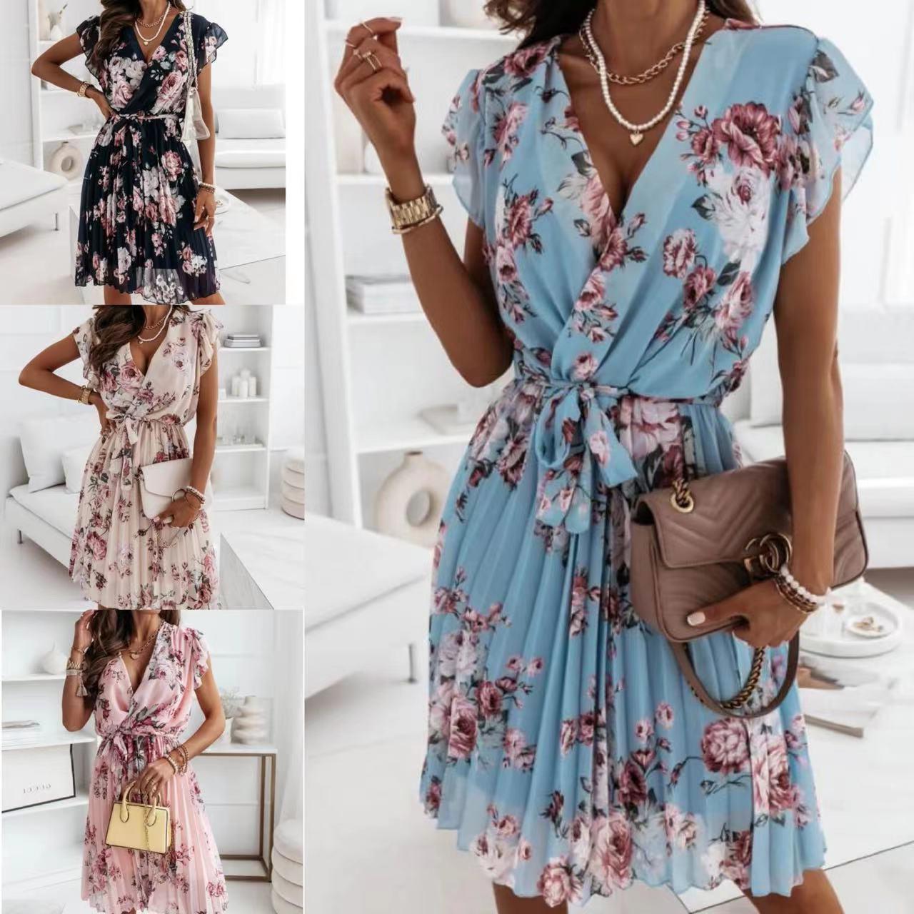 • Florales Muster: Das romantische Blumenmuster verleiht dem Kleid einen frischen, femininen Touch und eignet sich ideal für den Frühling und Sommer.