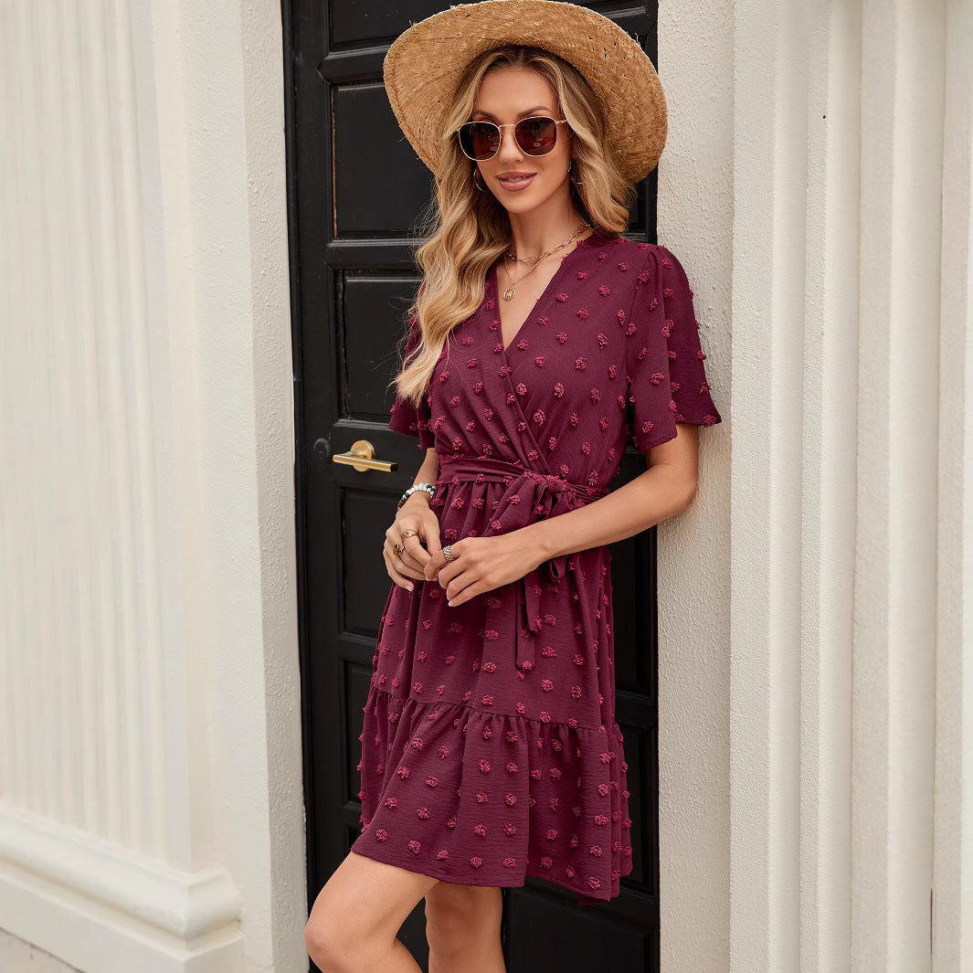Entdecken Sie unser Damen Wickelkleid mit luftigen Ärmeln von Stalluxe, das ideal für elegante Anlässe und lässige Ausflüge ist. Dieses wunderschöne Kleid besticht durch sein verspieltes Design und die hochwertige Verarbeitung.