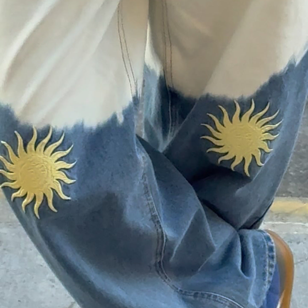 Damen Wide-Leg Jeans mit einzigartigem Sonnen-Motiv Stalluxe