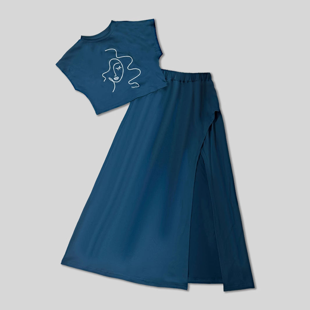 Damen Zweiteiliges Outfit mit cropped Oberteil und hohem Schlitzrock Stalluxe