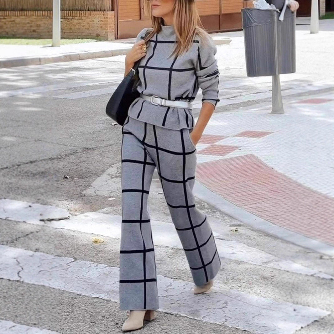 Damenmodischer Freizeitanzug mit grafischem Muster und elastischem Bund Stalluxe