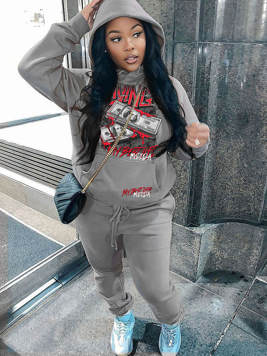 • Praktische Details: Der Hoodie hat eine Kängurutasche, in der Sie Ihre Essentials sicher verstauen können, während der elastische Bund der Jogginghose zusätzlichen Komfort bietet.